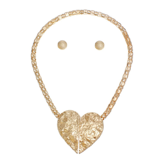 Magnetic Gold Hammered Heart Chain Necklace