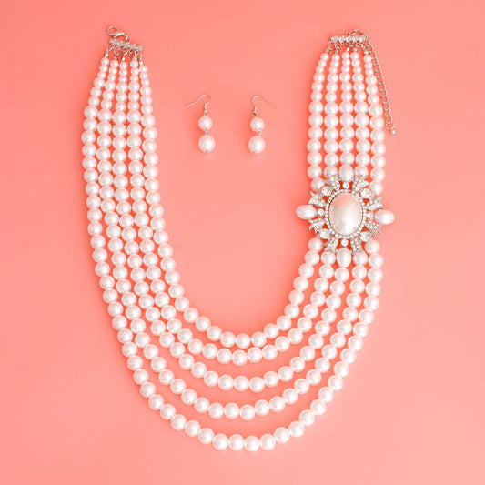 White Multi Strand Pearl Necklace Set