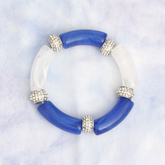 ZPB Blue White Tubular and Rondelle Bead Bracelet