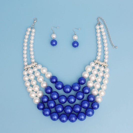 ZPB Chunky Blue White Pearl Bib Necklace Set