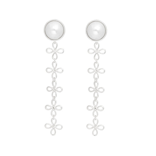Dangle Dome Pearl Silver Looped Flower Earrings