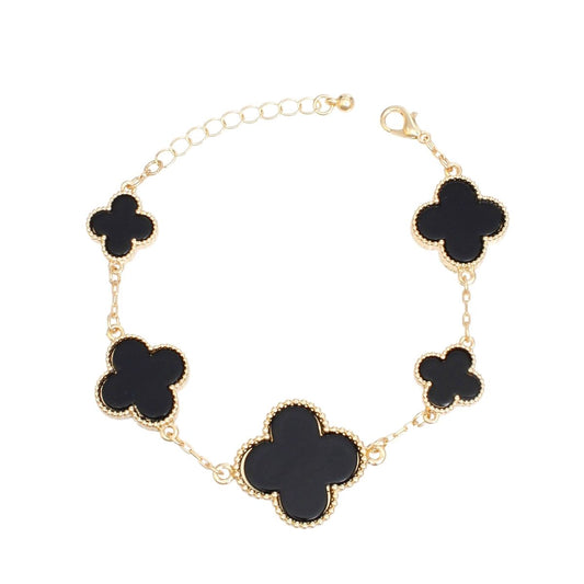 Gold Chain Bracelet with Black Quatrefoil Clovers